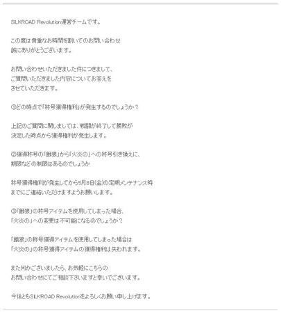 日頃より、SiLKROAD Revolutionをご愛顧いただき誠にありがとうございます。