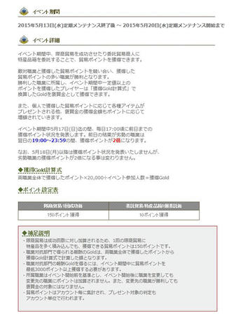 2015年5月20日(水)定期メンテナンス後 ~ 2015年6月17日(水)定期メンテナンスまで