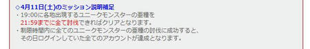 4月11日(土)の接続障害の影響も、人によっては4月11日(土)のミッションの成功対象にならない可能性があるわけで・・・