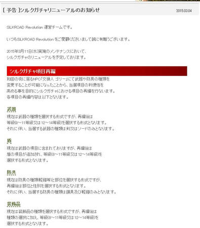 SiLKROAD Revolutionへの統合によってゲーム内の状況が変化することとなりましたが、