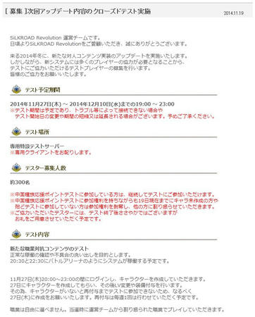 [ 募集 ]次回アップデート内容のクローズドテスト実施 2014.11.19