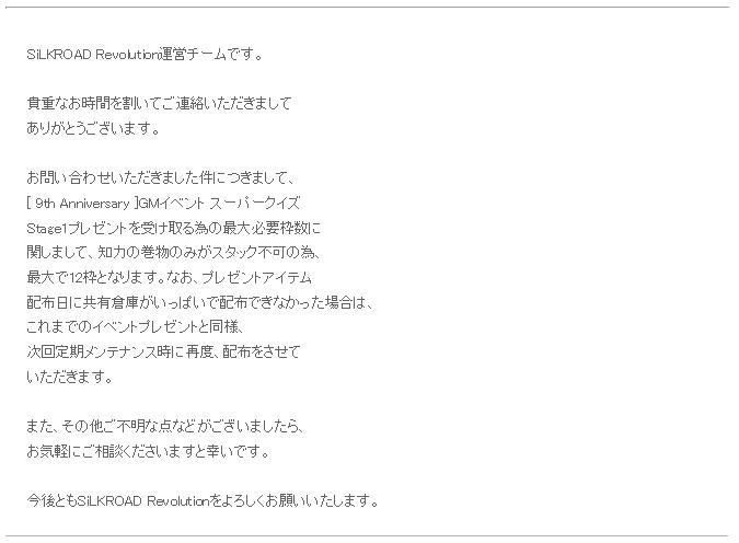 日頃よりSiLKROAD Revolutionをご愛顧いただき、誠にありがとうございます。