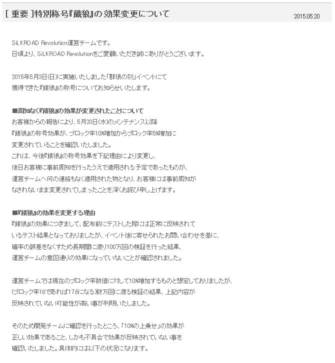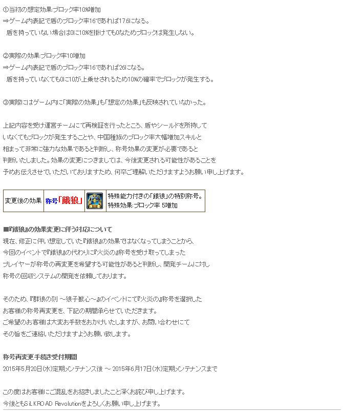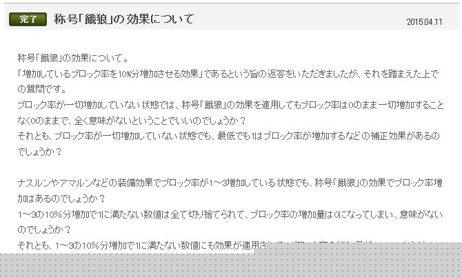 称号「餓狼」の効果変更についての告知がどうにも・・・