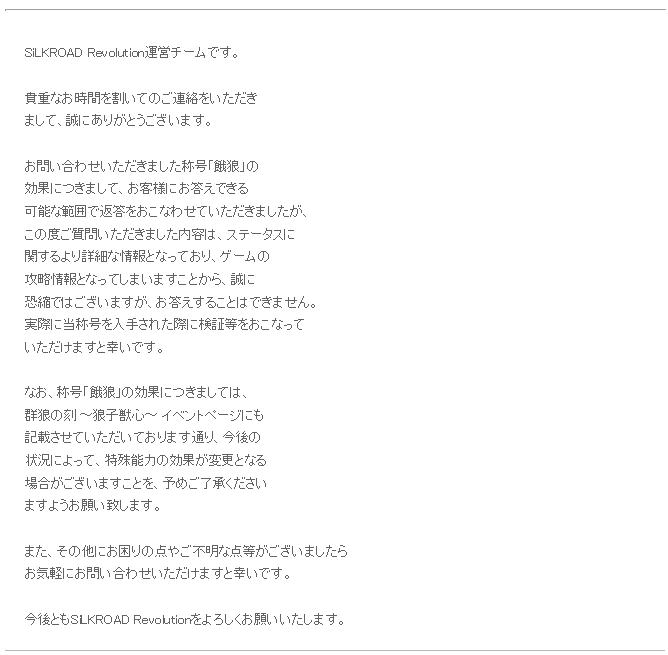 SiLKROAD Revolution運営チームです。