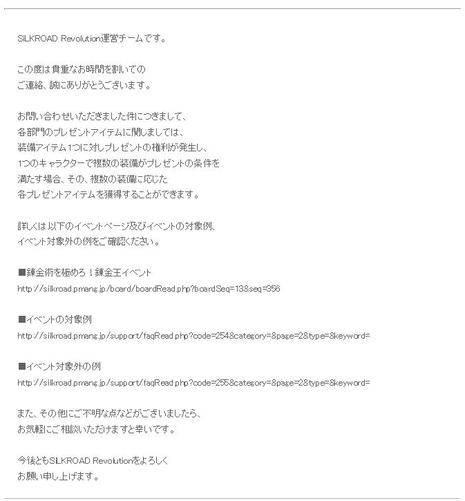 日頃よりSiLKROAD Revolutionをご愛顧いただき、誠にありがとうございます。