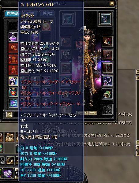 13レジェロッド&レジェ盾に加えて、13マジック軽鎧全身錬金済み&13レジェアクセ全身で、防具以外は無難な水準。