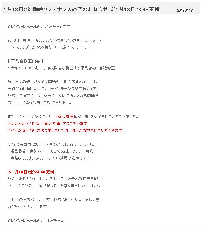 1月23日のメンテで修正パッチ。