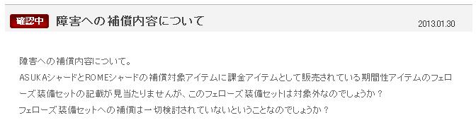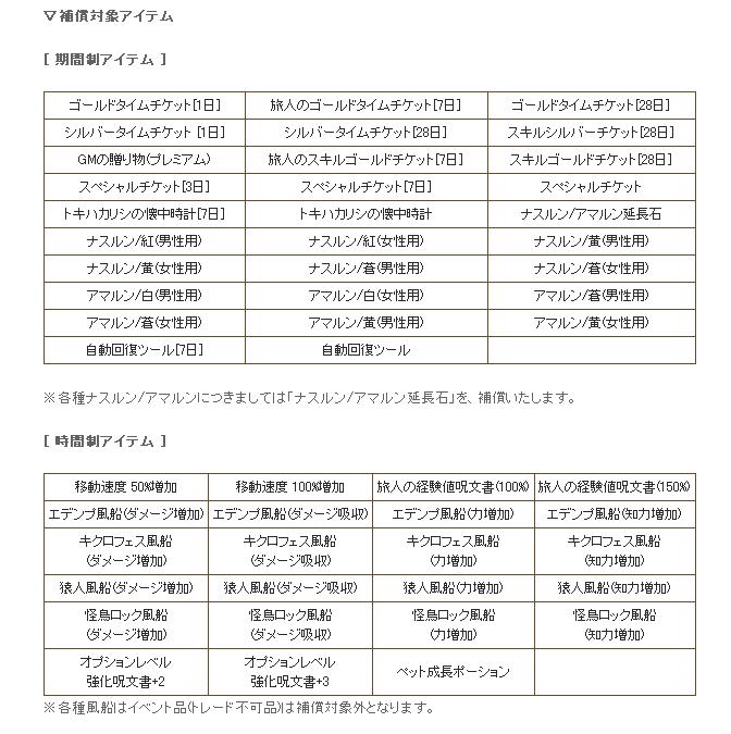 アイテム補償はフェロ装備が対象外っての以外はまあ納得。