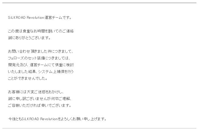 フェローズ装備セットへの補償は一切検討されていないということなのでしょうか?