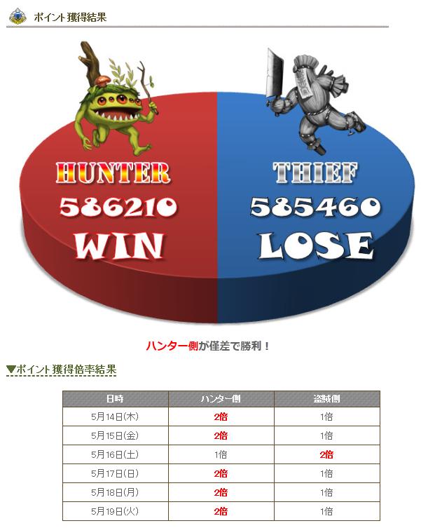 750ポイント差でハンター側の勝利