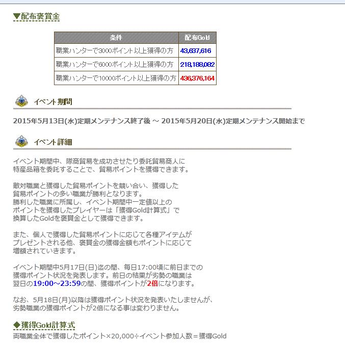 両職業全体で獲得したポイント×20,000÷イベント参加人数=獲得Gold