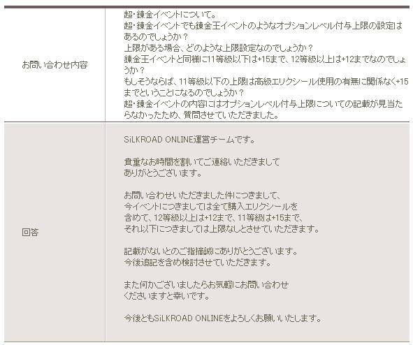 前の錬金イベでは11等級以下は高級使用関係なく+15までって返答だったけど・・・