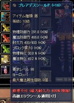 実験台は過去の錬金イベを経て作ったBエリク使用の98不可+14盾。