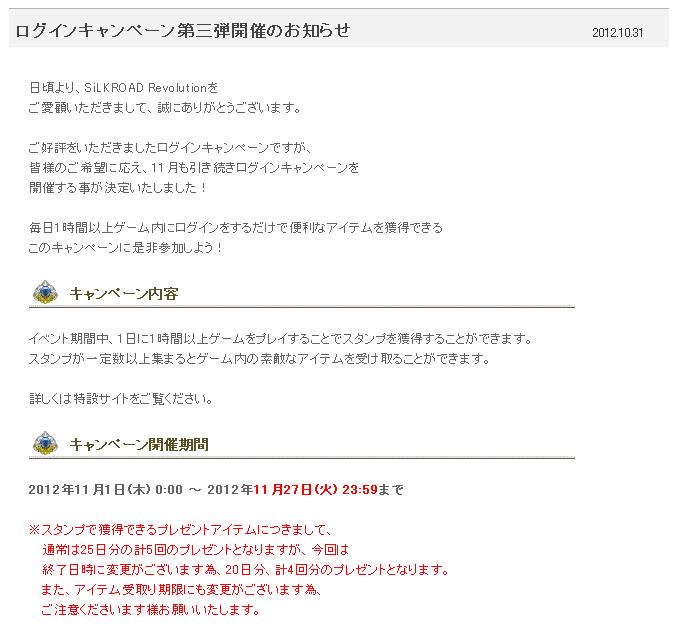 2012年11月1日(木)00:00~2012年11月27日(火)23:59まで