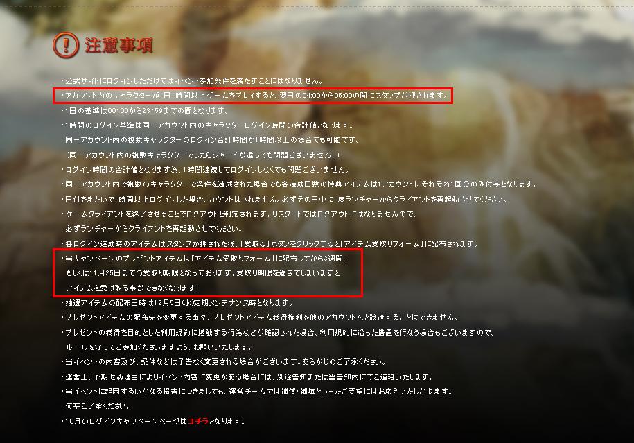アイテム受け取り期限が「「アイテム受取りフォーム」に配布してから3週間、もしくは11月25日まで」