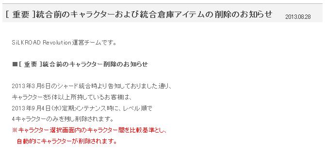 2013年9月4日(水)定期メンテナンス後 ~ 2013年9月11日(水)メンテナンス開始まで