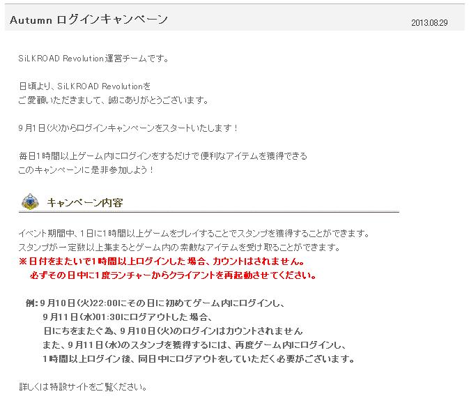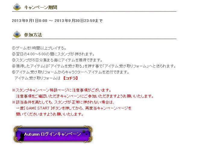 2013年9月4日(水)定期メンテナンス終了後 ~ 2013年10月2日(水)定期メンテナンスまで