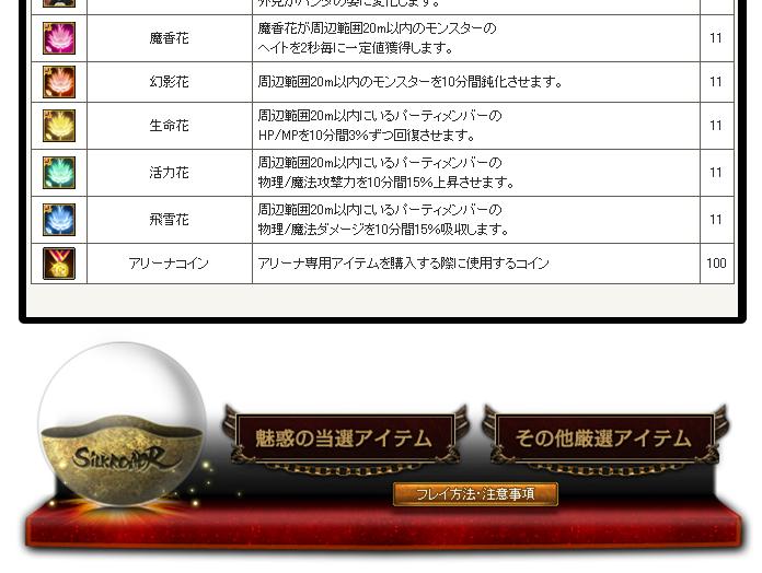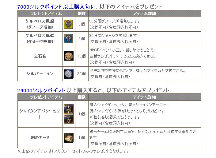 7000シルクポイント以上購入毎に、以下のアイテムをプレゼント