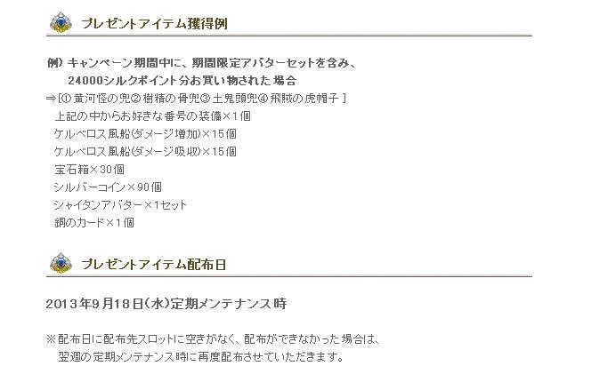 24000シルクポイント以上購入すると、以下のアイテムをプレゼント