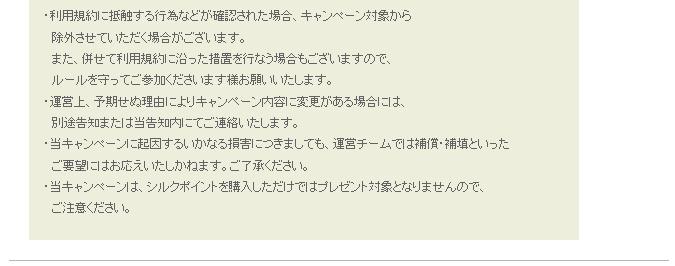 ※シルクポイントを購入しただけではプレゼントの対象になりません。