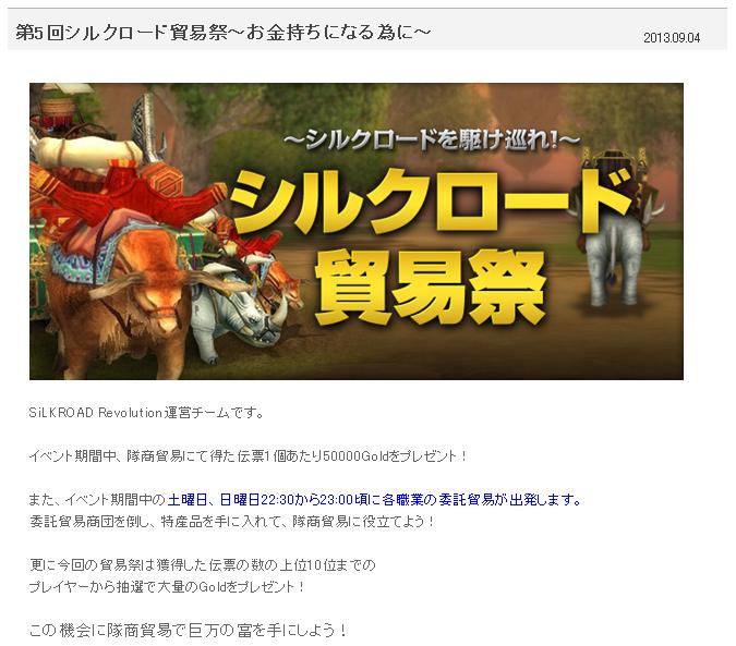 イベント期間中、隊商貿易にて得た伝票1個につき50000Goldをプレゼント!