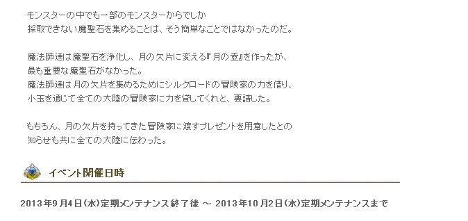 ※上記プレゼントアイテムから出る赤い月の欠片、黒い月の欠片は、