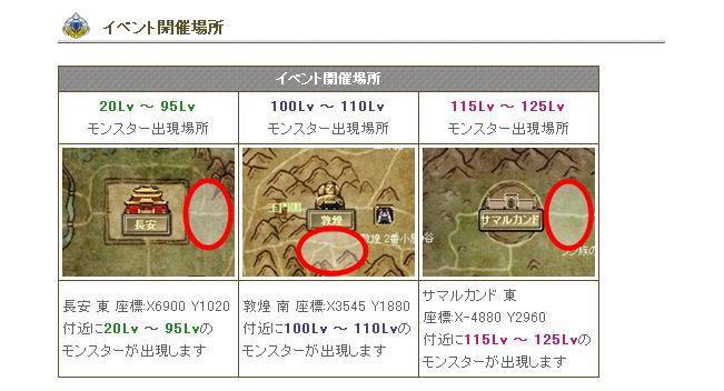 また、毎時50分より10分間の間、各街のNPC「イベント小玉」へ話しかけると、