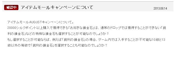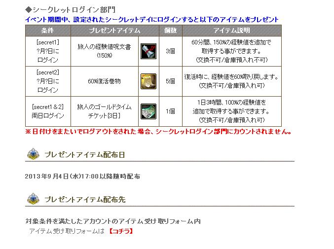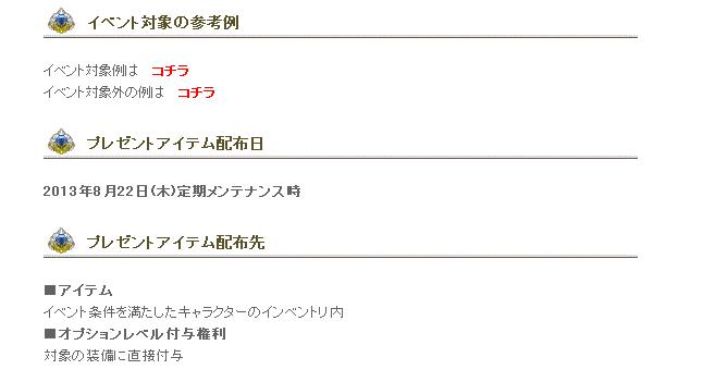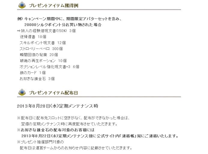 2013年8月14日(水)定期メンテナンス終了後 ~ 2013年8月28日(水)定期メンテナンス開始まで