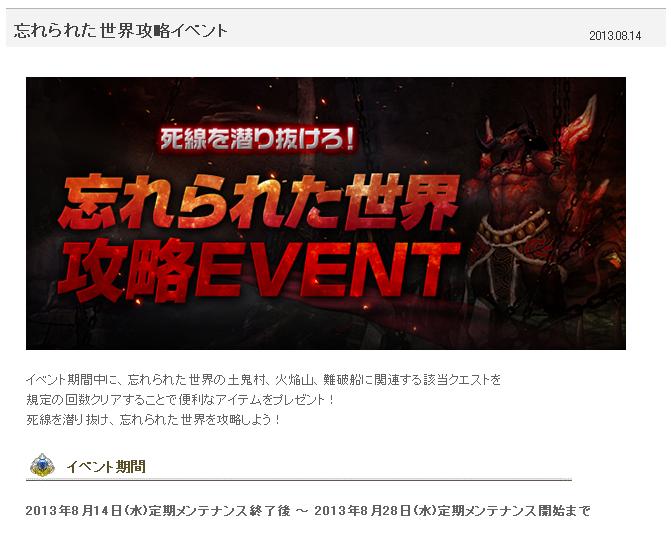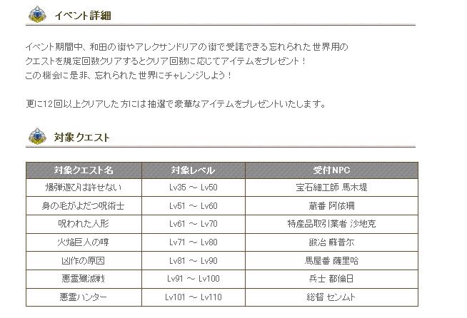 イベント期間中、和田の街やアレクサンドリアの街で受諾できる忘れられた世界用の