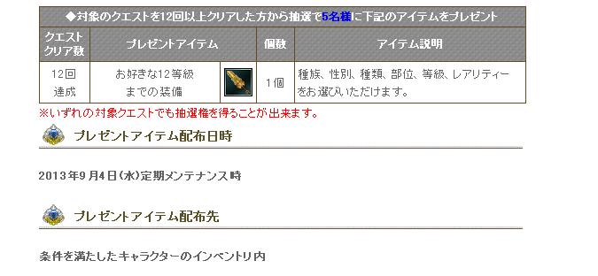 ※いずれの対象クエストでも抽選権を得ることが出来ます。