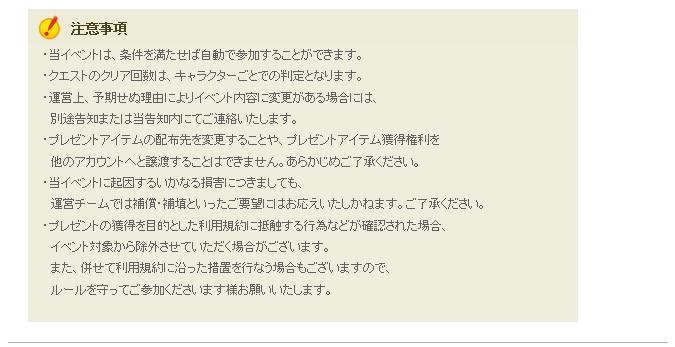 ◆対象のクエストを規定回数クリアした方全員に下記のアイテムをプレゼント