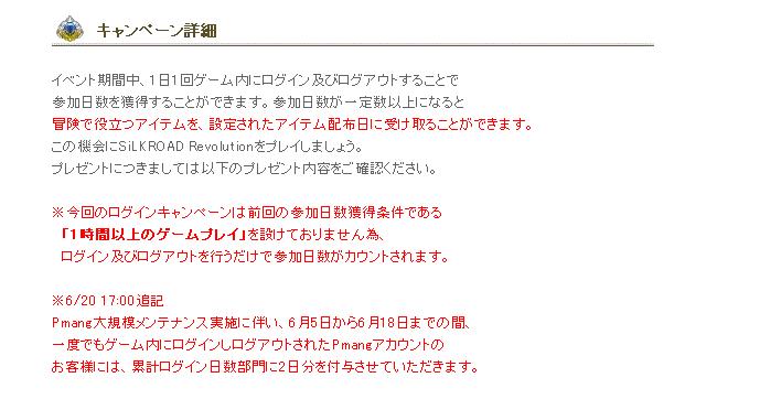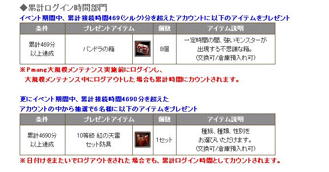 ログインイベントをやるのはいいんだけど、Pmang大規模メンテがあるってわかってるのこのタイミングで開始しなくても・・・