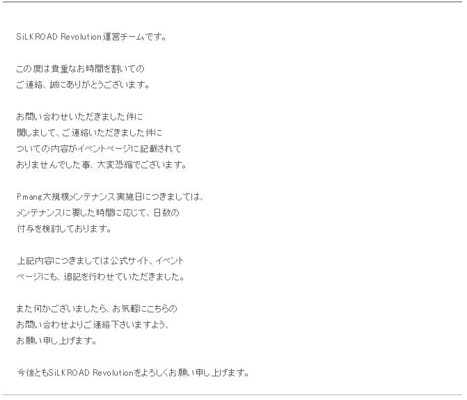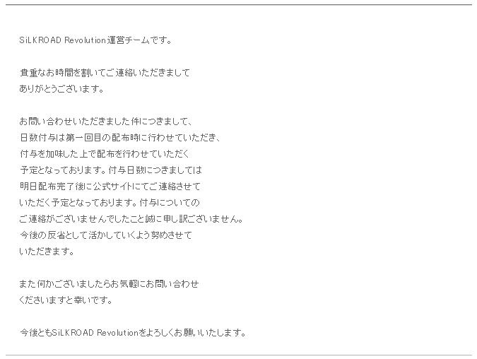 今後ともSiLKROAD Revolutionをよろしくお願い申し上げます。