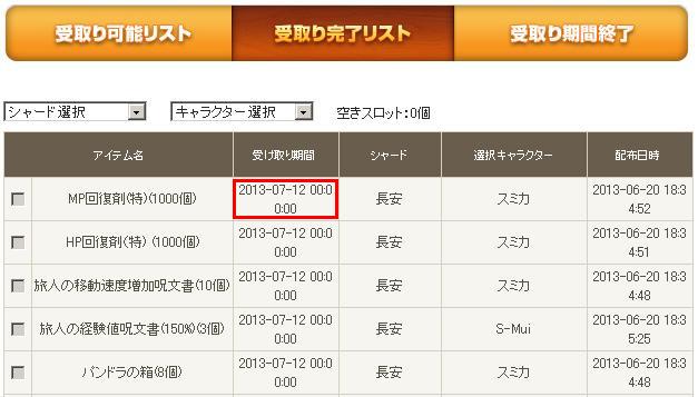 第2回目アイテム配布日:2013年7月4日(木)17:00以降随時配布