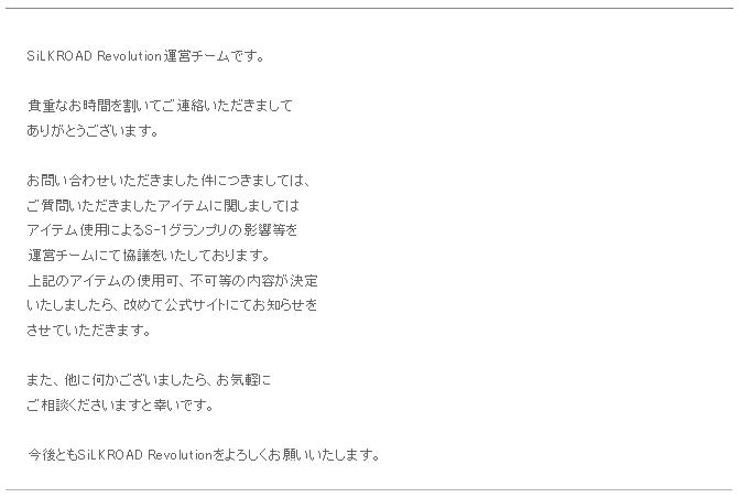 SiLKROAD Revolution運営チームです。