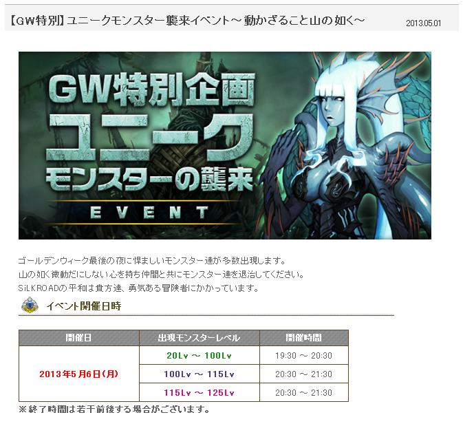 なんか経験値とかドロップ増加の時間にイベ時間が思いっきり被ってるなぁ・・・