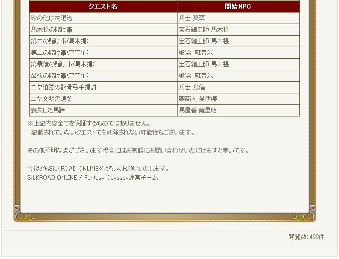 今後ともSiLKROAD ONLINEをよろしくお願い申し上げます。