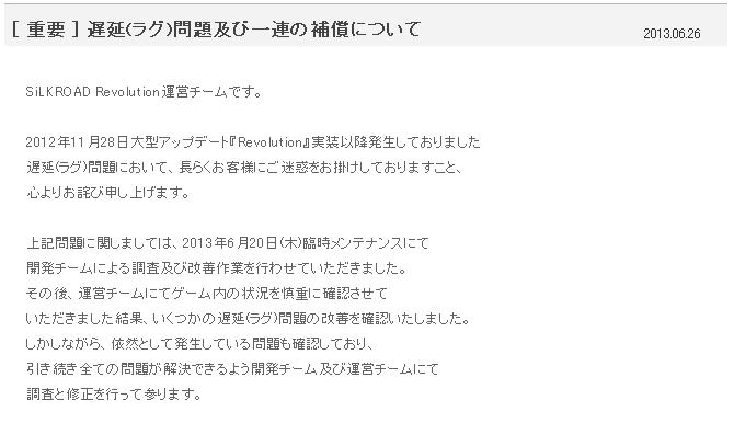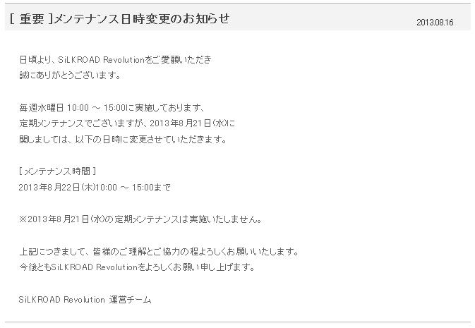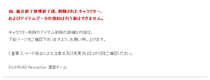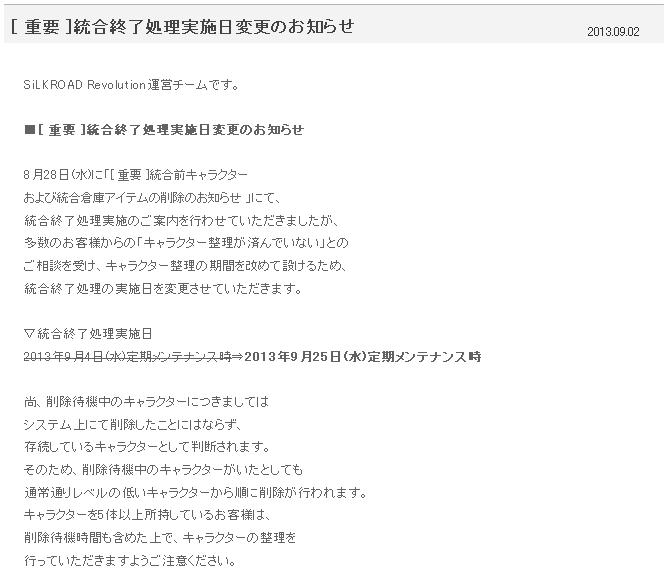 [ 重要 ]統合終了処理実施日変更のお知らせ 2013.09.02SiLKROAD Revolution運営チームです。