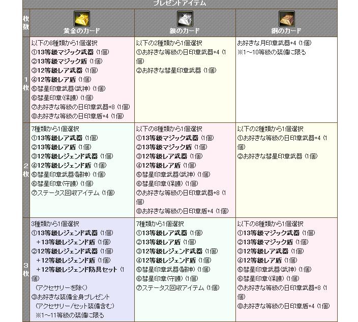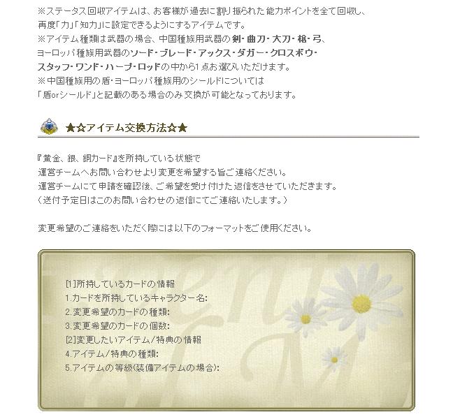 カード交換システムの交換アイテム内容を変更いたします。