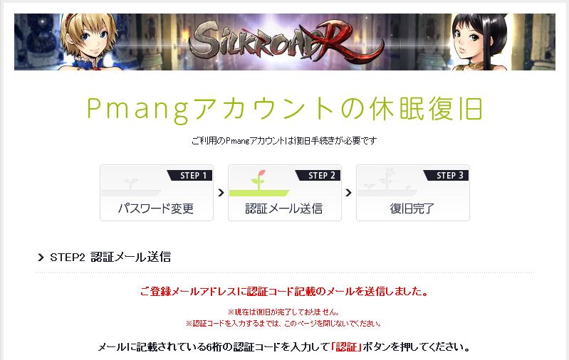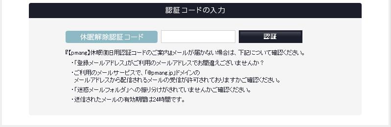 登録したメールアドレスへ届いた休眠解除認証コードを入力すれば完了。