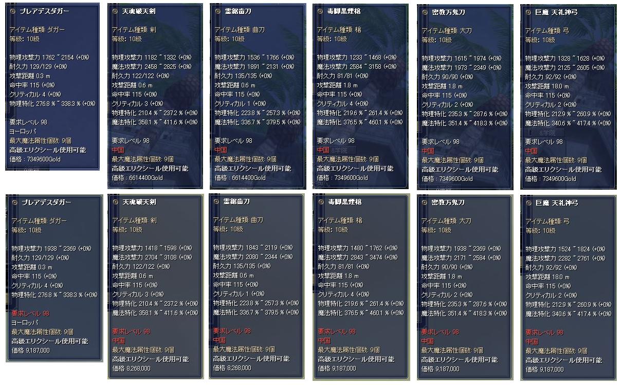 中華武器の物理攻撃力&魔法攻撃力が上昇