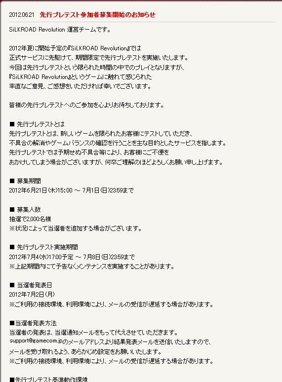 Revolution先行プレテストのメモ。