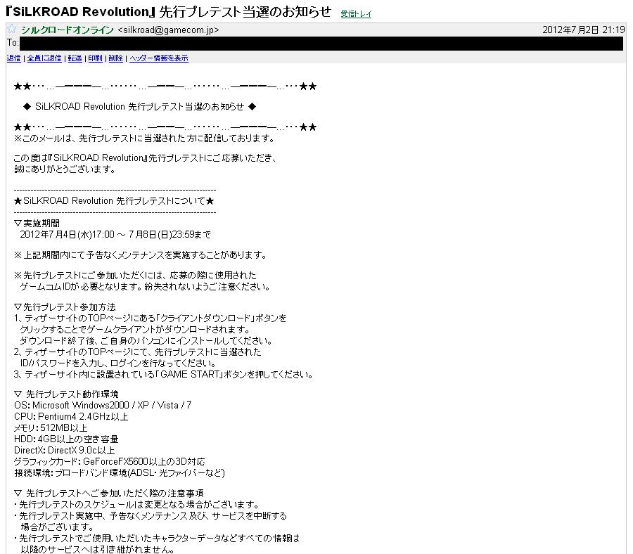 Revolution先行プレテスト、1口だけ応募してたのが当選してました。