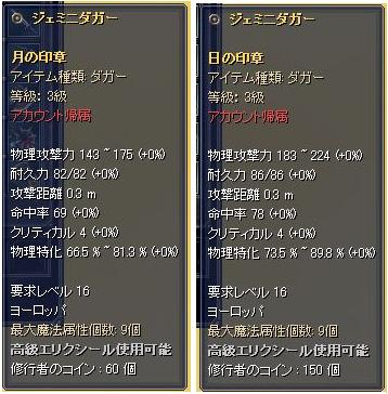 装備との交換は3級ダガーの場合だと、月で60枚、日で150枚。