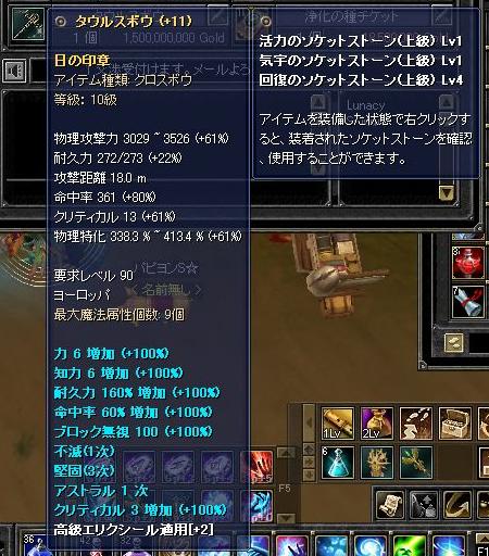 伝説を+7で即アップするのはちょっともったいない気もしたけど、+11にして飛び級アップなんて狙う余裕なかったので即アップ。