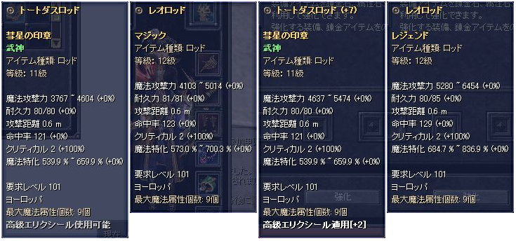 こうして比べてみると、マジック武器も実は侮れないですね・・・