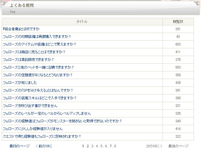 「フェローズの初期装備は再度購入できますか?」はどこからも直接リンクを張られてないから少ないんでしょうね。