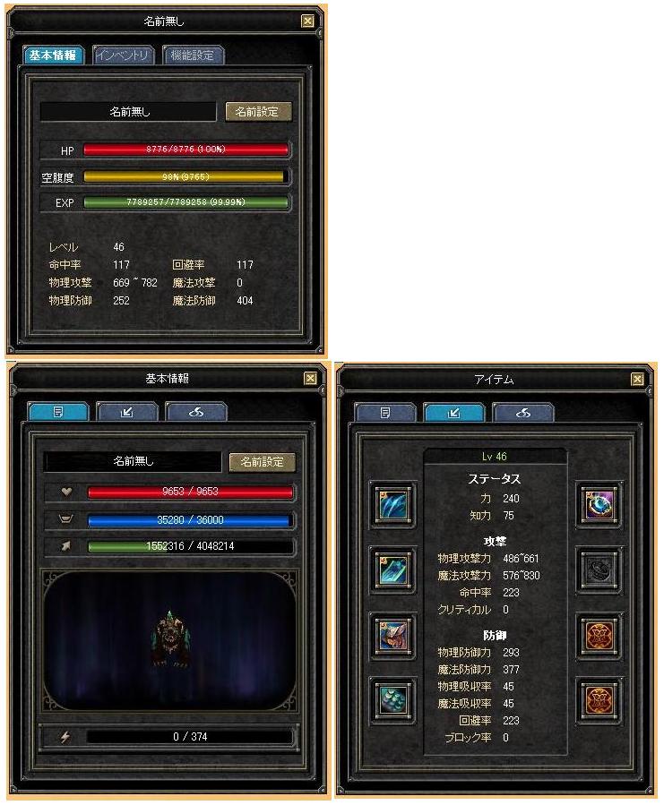 職Lv:80(職装備:最下級&下級共通青オール最大値混合)