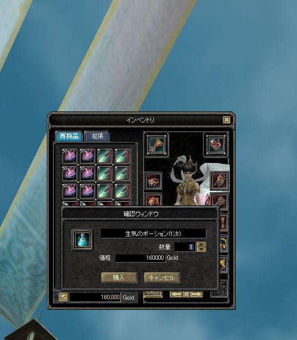 このときは-20%で160,000Goldなので、所持金も160,000Goldぴったりにして1個買おうとしてみます。