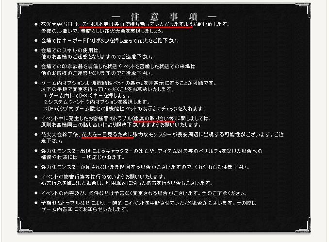 「エフェクト設定を全エフェクト表示にしていないと花火が上がっても見えない」